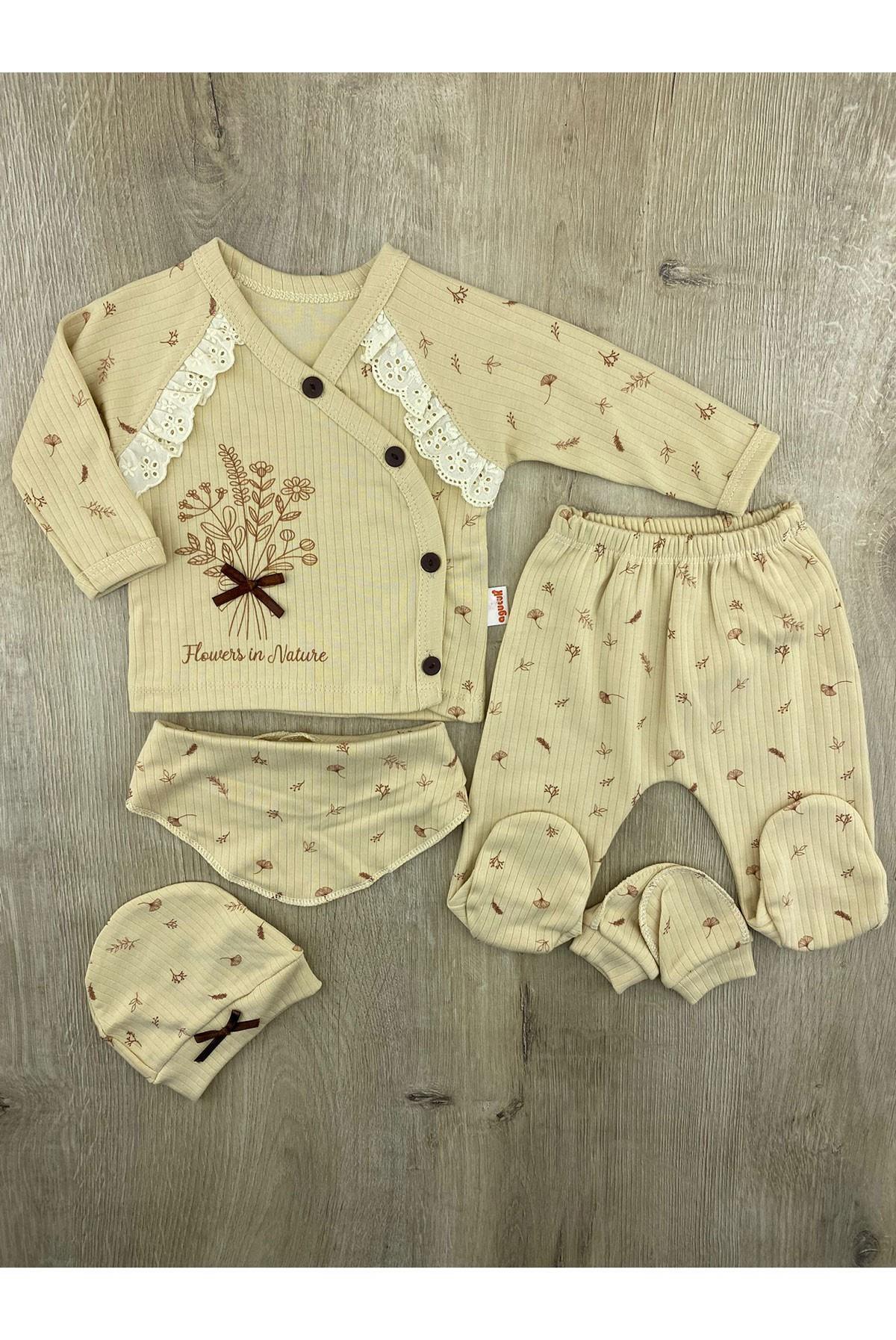 Agucuk (0-3 Ay) Dantelli Çiçek Desenli 5Li Zıbın Takımı