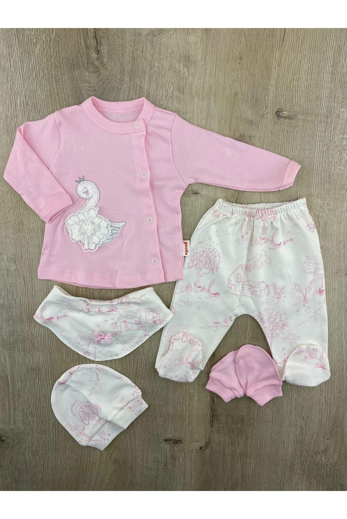 Agucuk (0-3 Ay) Kuğu Desenli 5Li Zıbın Takımı