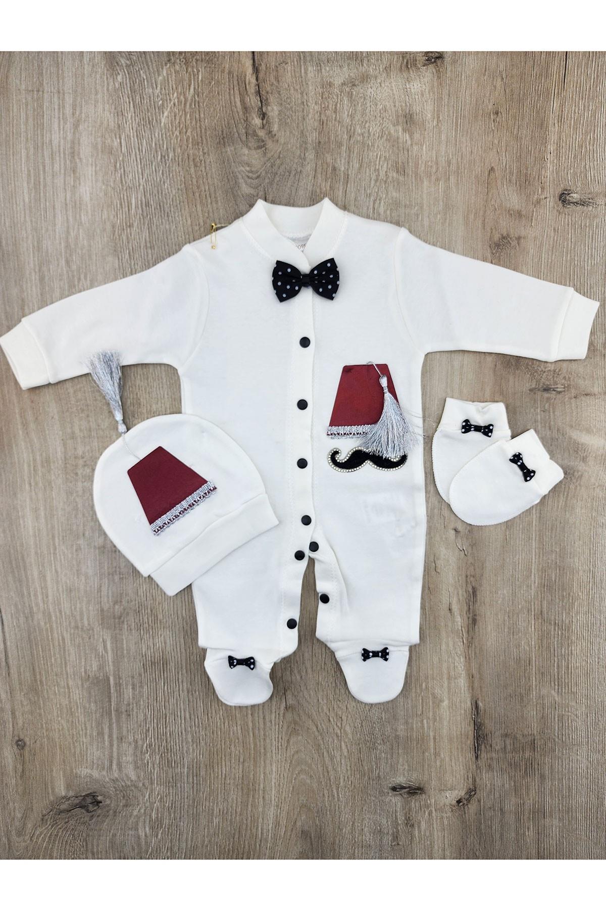 Amore (0-9 Ay) Bıyık Desenli Eldivenli Şapkalı Tulum