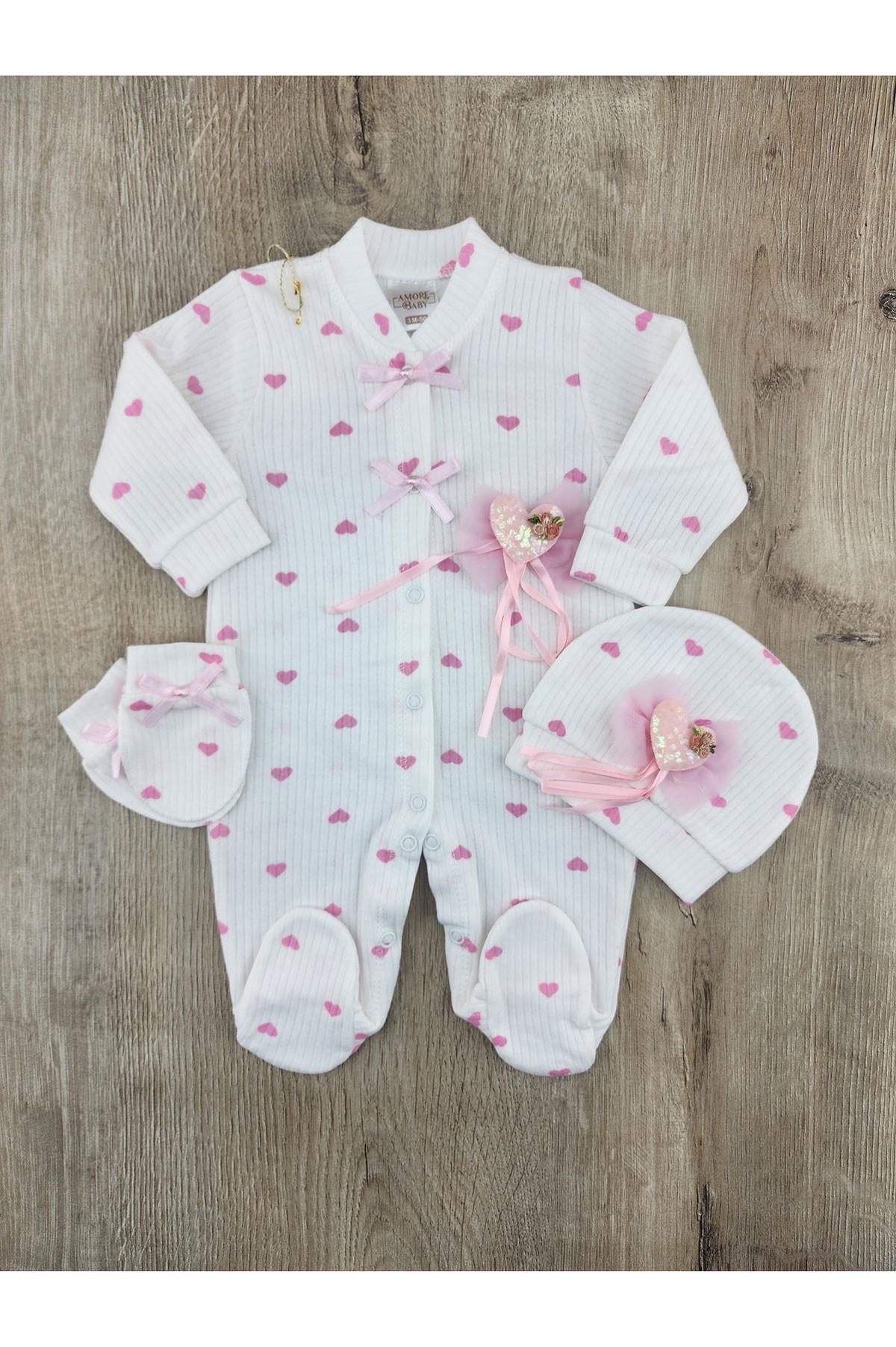 Amore (0-9 Ay) Çiçek Desenli Eldivenli Şapkalı Tulum (P-00000007003)