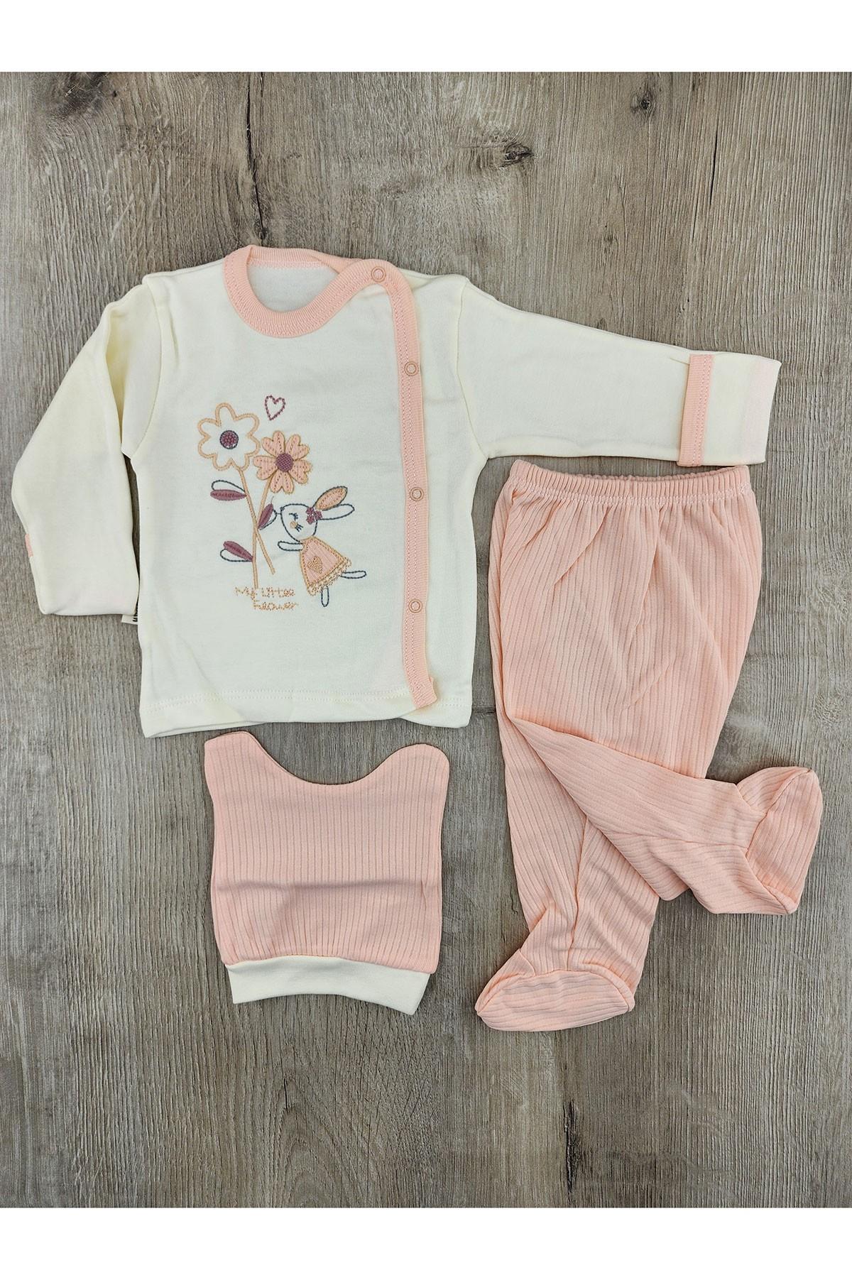 Babycan 9393 (0-3 Ay) Papatya Tavşan Desenli Kendinden Eldivenli Şapkalı Zıbın Takımı