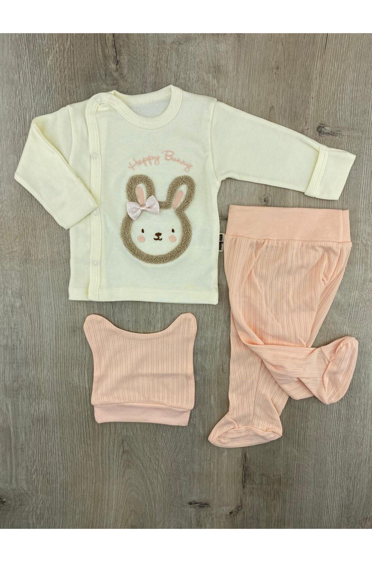 Babycan 9406 Tokalı Tavşan Desenli Kendinden Eldivenli Şapkalı Zıbın Takımı