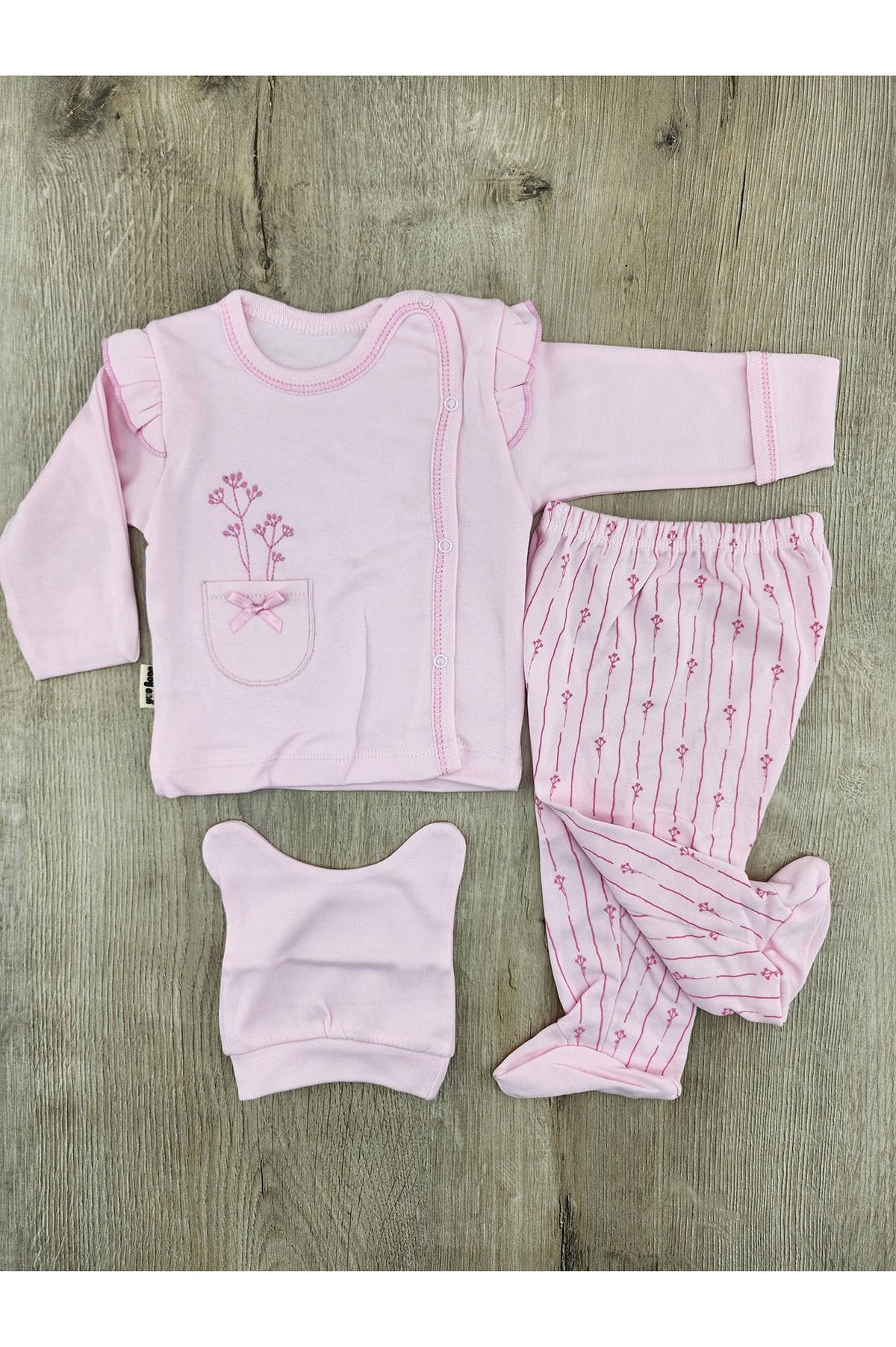 Babycan 9410 (0-3 Ay) Cepli Çiçek Nakışlı Kendinden Eldivenli Şapkalı Zıbın Takımı