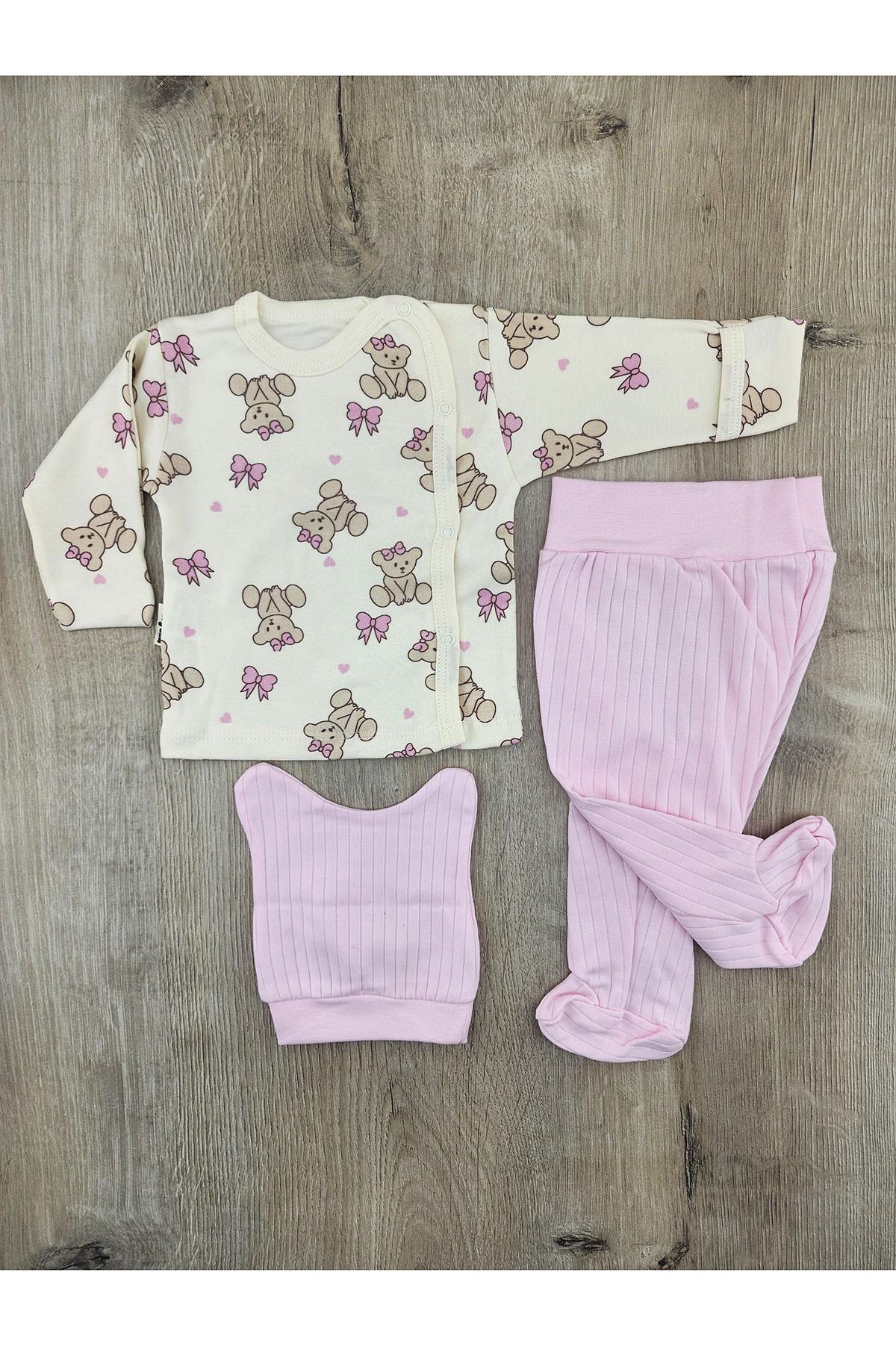 Babycan 9415 Fiyonklu Ayıcık Desenli Kendinden Eldivenli Şapkalı Zıbın Takımı
