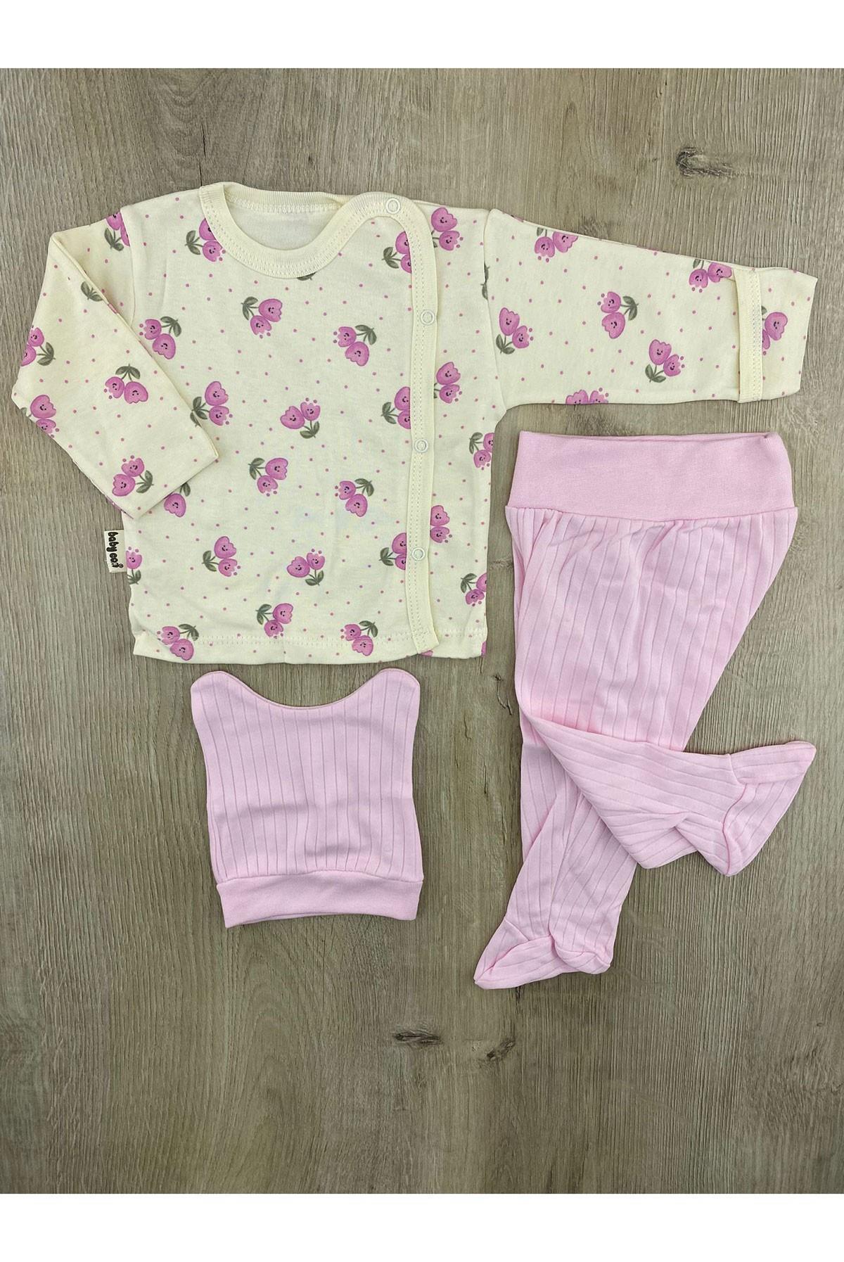 Babycan 9422 (0-3 Ay) Puanlı Lale Desenli Kendinden Eldivenli Şapkalı Zıbın Takımı