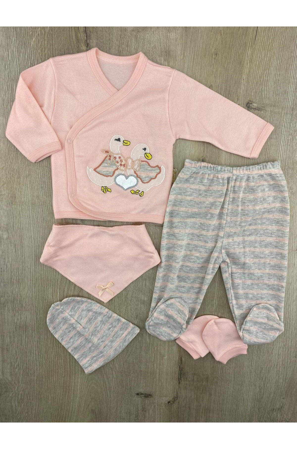 Babyim 1766 (0-3 Ay) Ördekler Desenli 5Li Zıbın Takımı