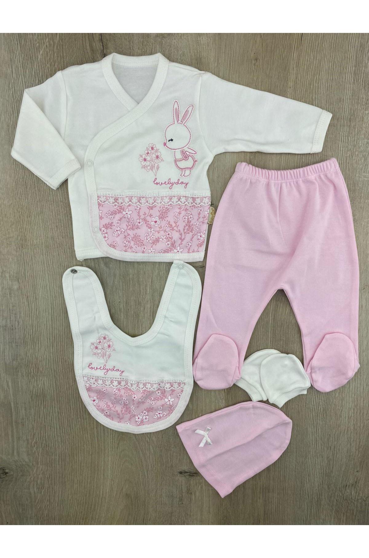 Babyim 2216 (0-3 Ay) Çiçekli Tavşan Desenli 5Li Zıbın Takımı