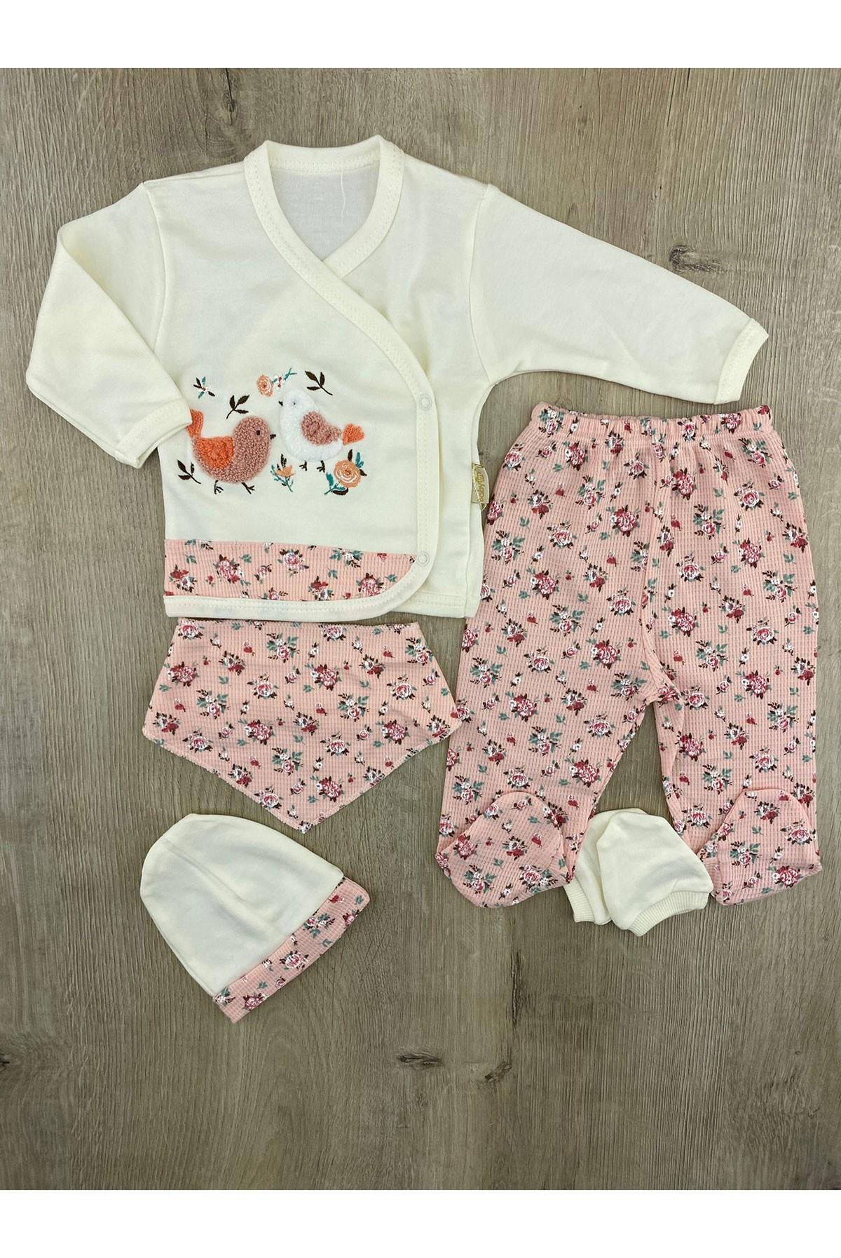 Babyim 2217 (0-3 Ay) Minik Kuşlar Desenli 5Li Zıbın Takımı