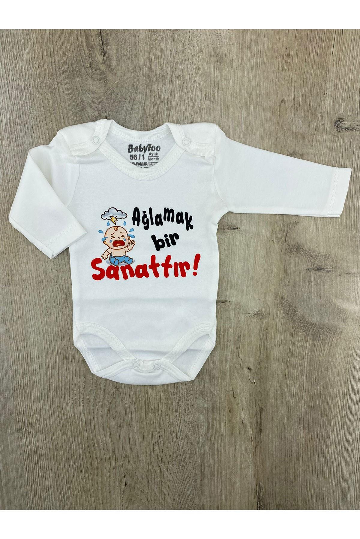 Babytoo (0-36 Ay) AĞLAMAK BİR SANATTIR Desenli Uzunkol Çıtçıtlı Badi (P-00000006714)
