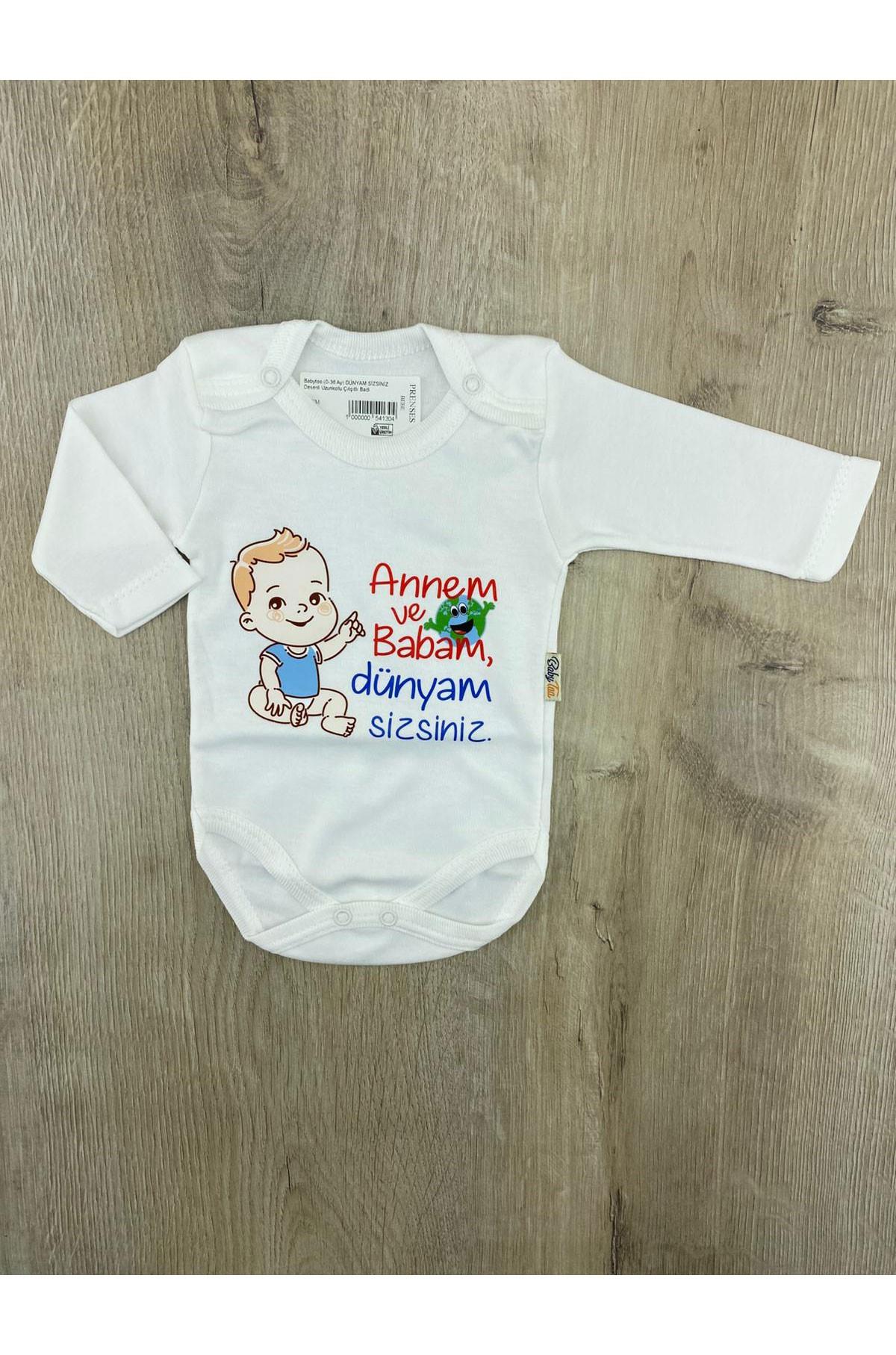 Babytoo (0-36 Ay) DÜNYAM SİZSİNİZ Desenli Uzunkollu Çıtçıtlı Badi (P-00000006725)