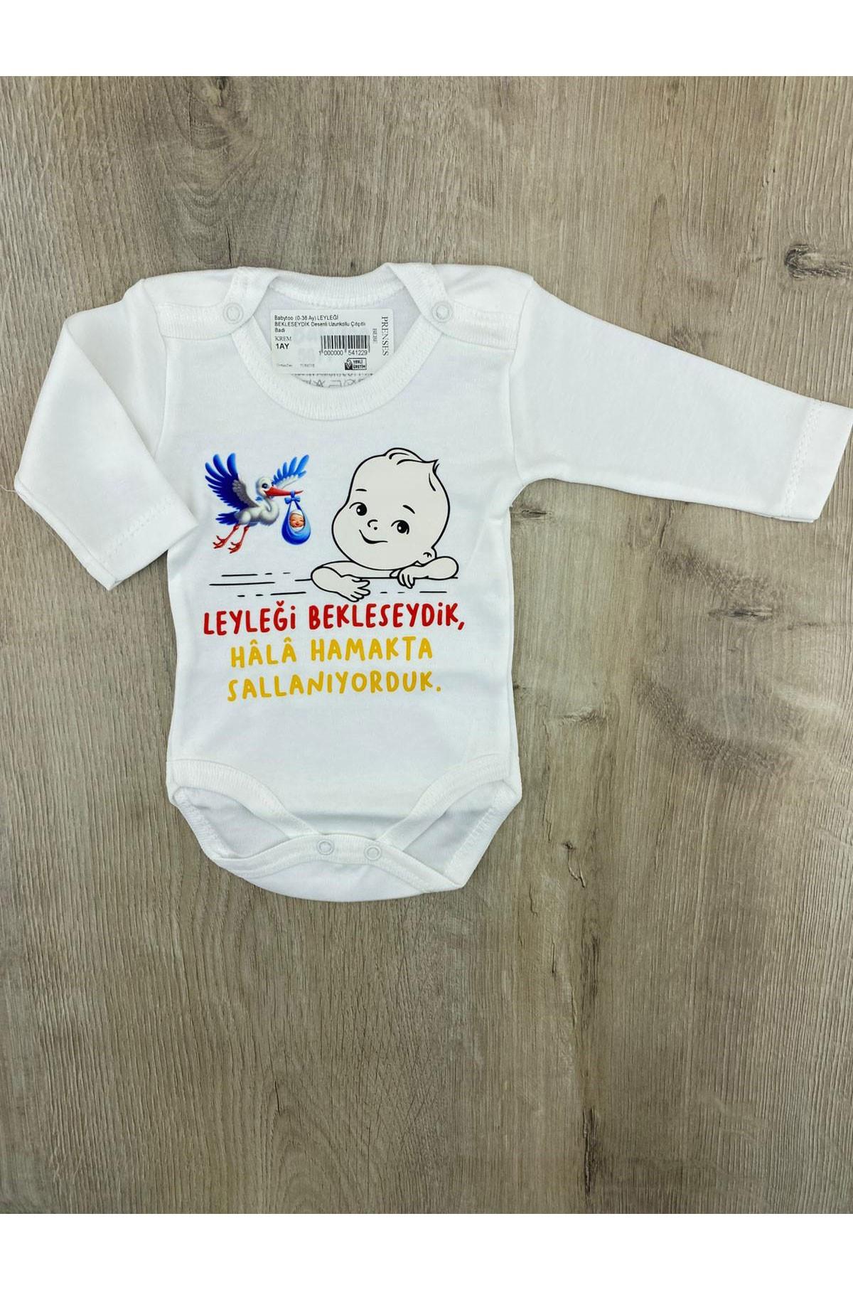Babytoo  (0-36 Ay) LEYLEĞİ BEKLESEYDİK Desenli Uzunkollu Çıtçıtlı Badi