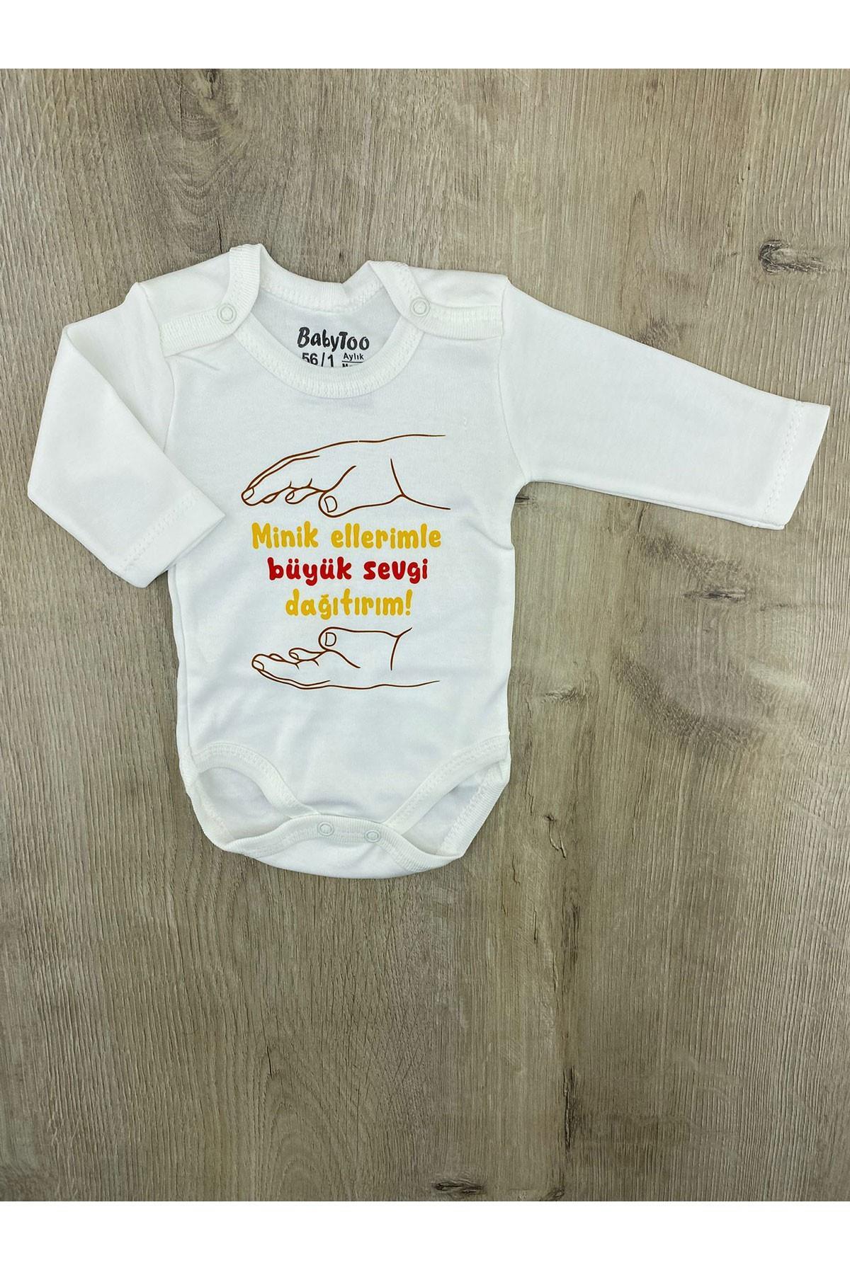 Babytoo (0-36 Ay) MİNİK ELLERİMLE SEVGİ DAĞITIRIM Desenli Uzunkollu Çıtçıtlı Badi