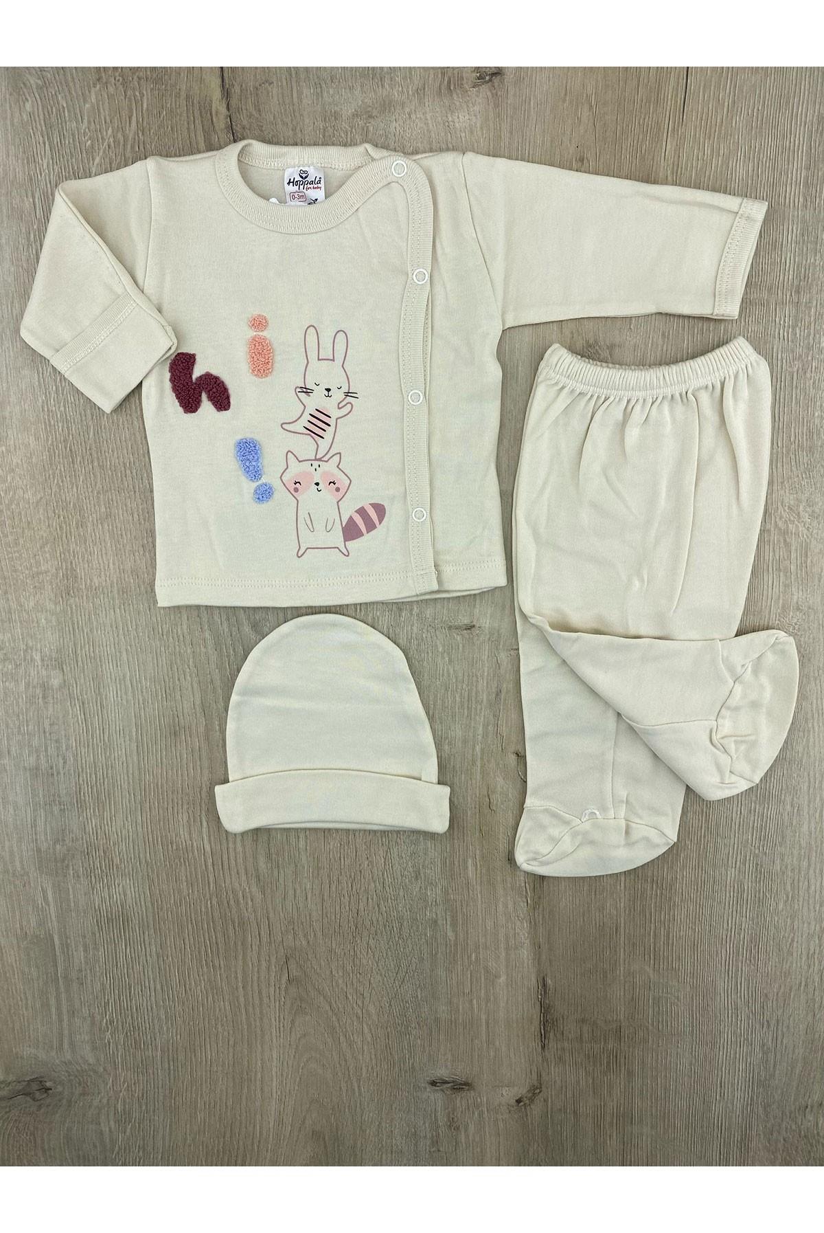 Hoppala Süzene Tavşan Desenli Kendindn Eldivenli Şapkalı Zıbın Takımı (P-00000005913)