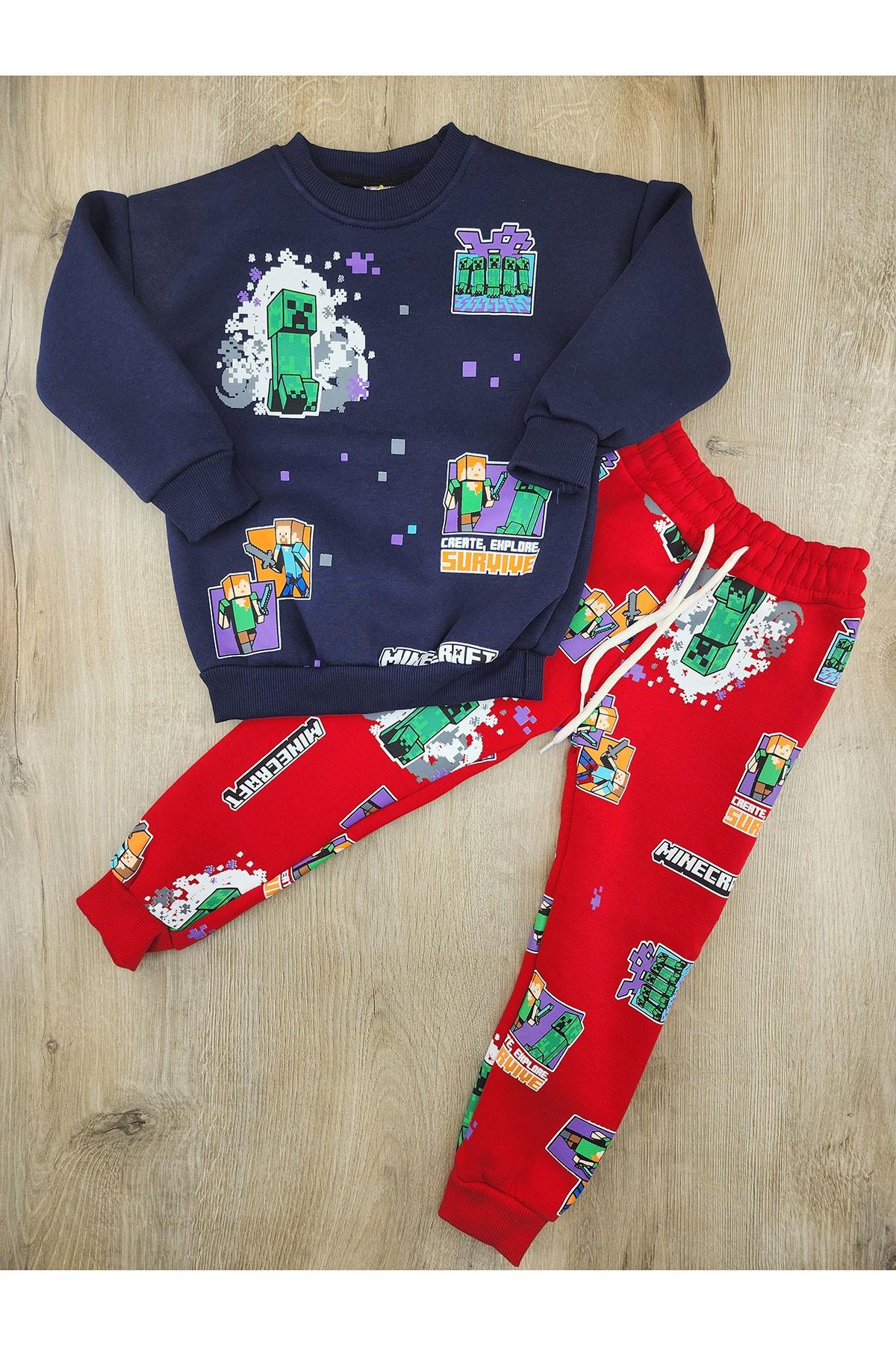 Jeliboom (3-10 Yaş) Create Minecraaft Desenli 3ip Şardonlu Takım