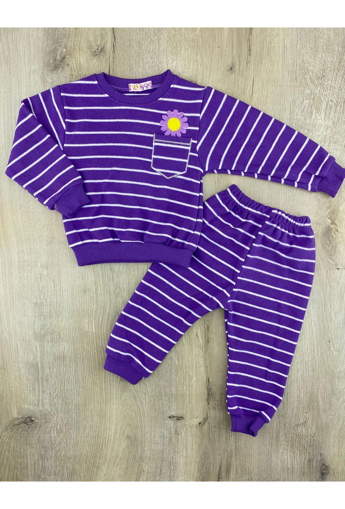 Keskincan (2-5 Yaş) Çizgili Papatya Desenli Selanik Takım (P-00000006668)