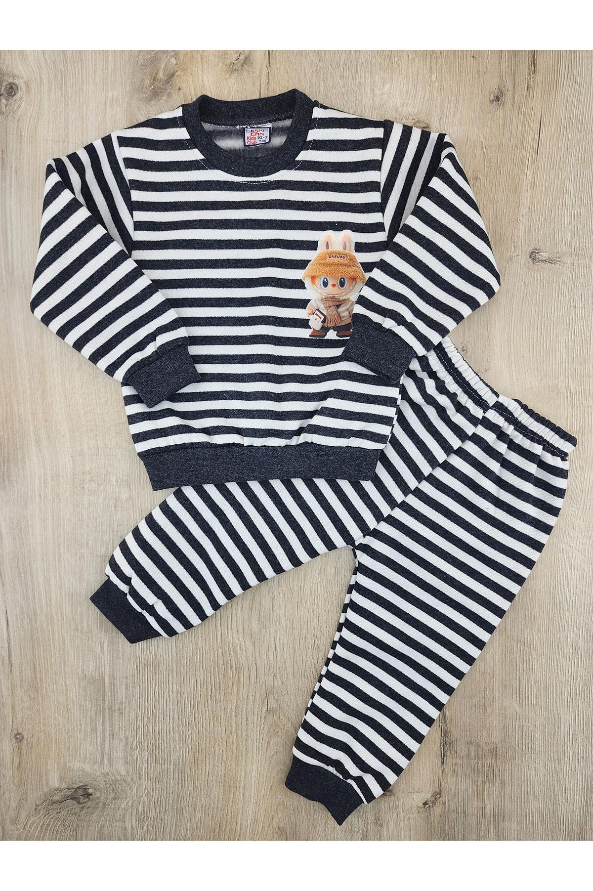 Keskincan (2-5 Yaş) Şapkalı Labubu Desenli Çizgili Şardonlu Takım
