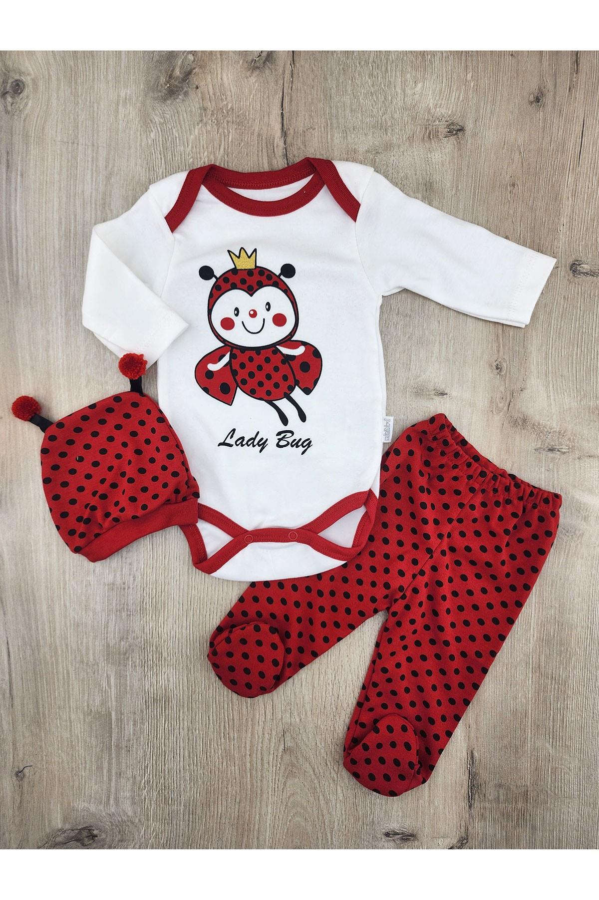 Minibird (3-9 Ay) Uğur Böceği Desenli Çıtçıtlı Badili Şapkalı Takım