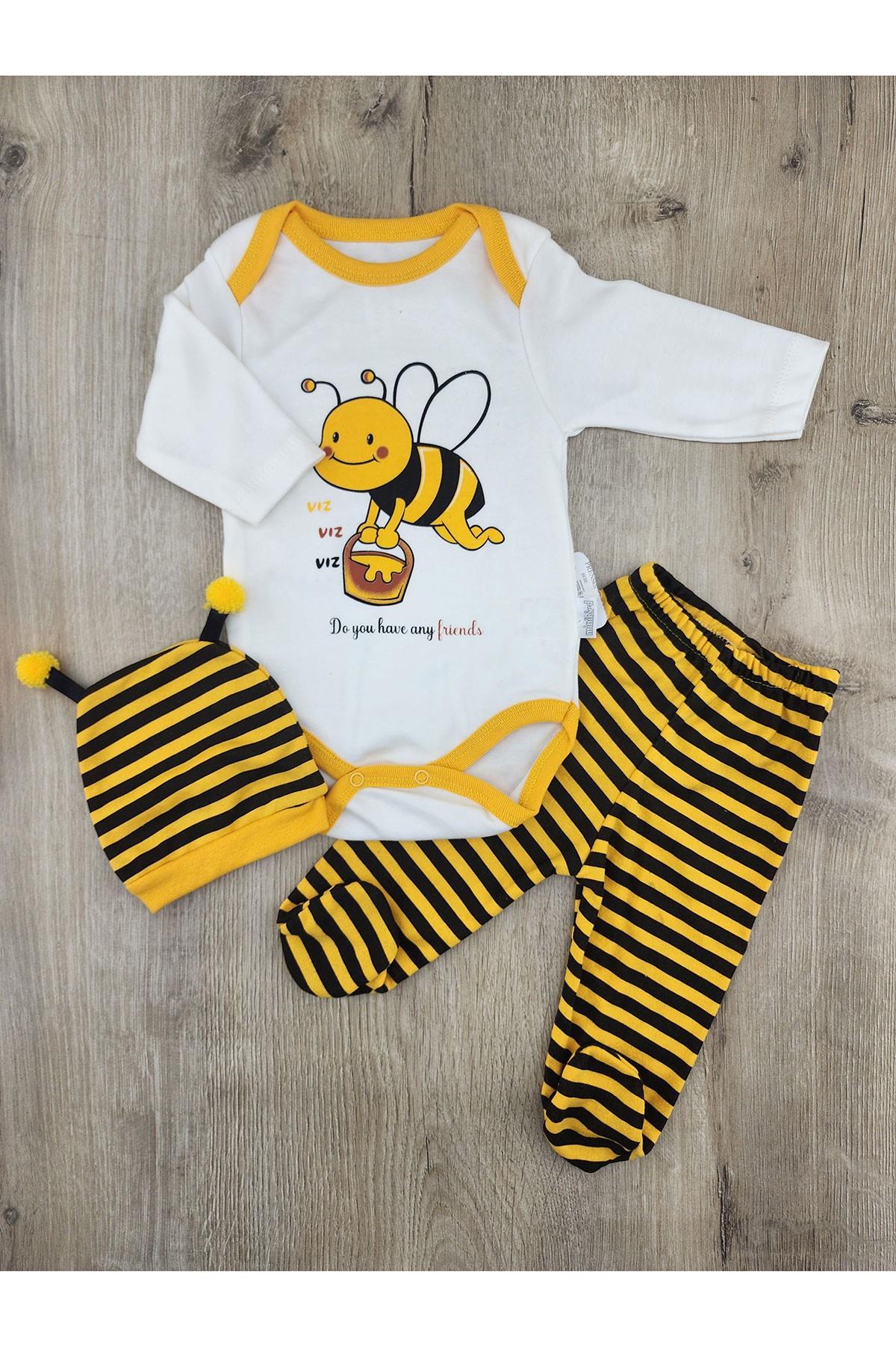 Minibird(3-6 Ay) Arı Desenli Şapkalı Çıtçıtlı Badili Takım