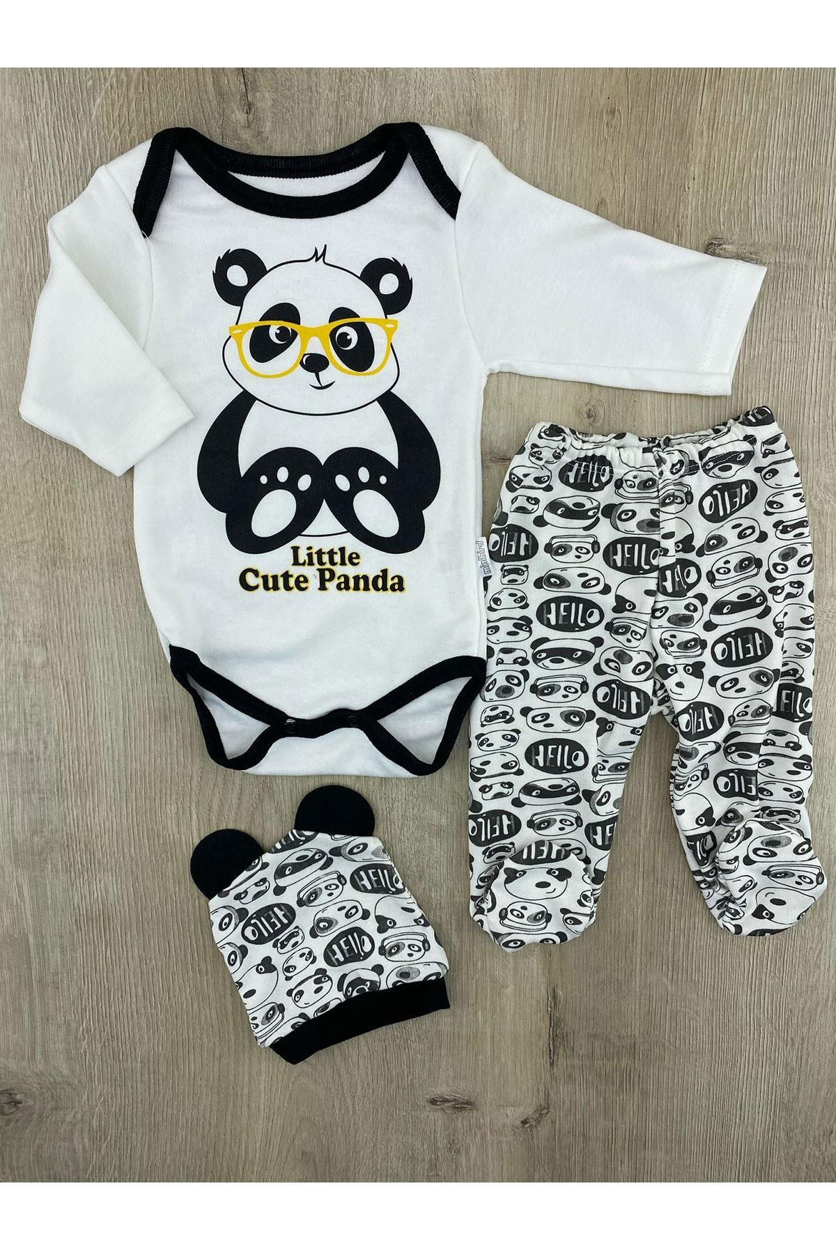 Minibird(3-6 Ay) Panda Desenli Çıtçıtlı Badili Şapkalı Takım (P-00000005928)