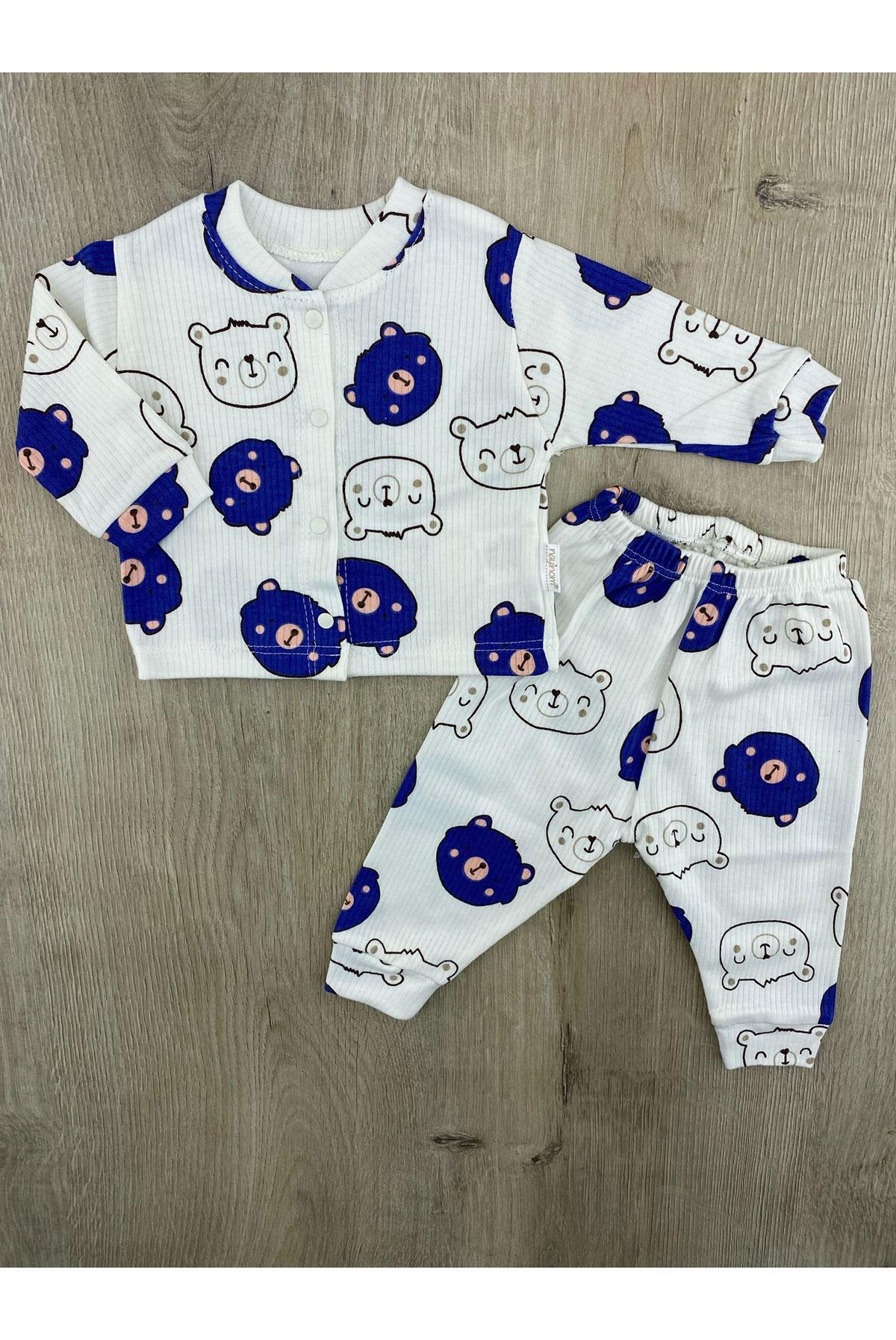 Nayinom (0-9 Ay) Ayıcık Desenli Öndne Çıtçıtlı Pijama Takımı