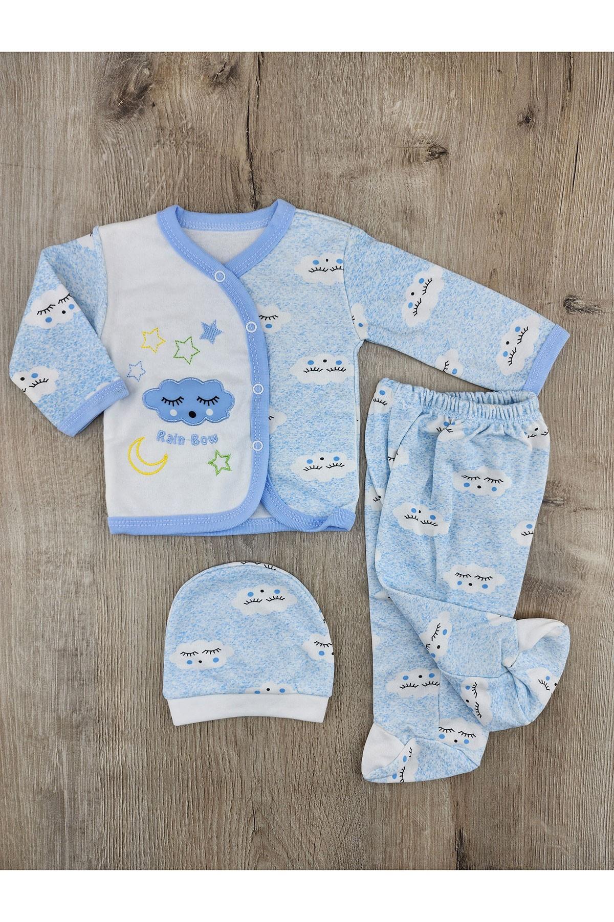Özlev (0-3 Ay) Bulut Desenli Şapkalı Zıbın Takımı