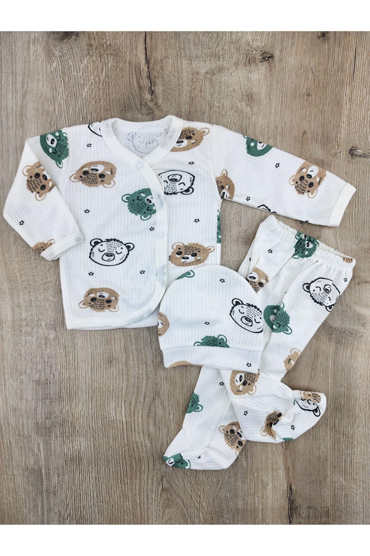 Özlev (0-3 Ay) Renkli Ayıcık Desenli Şapkalı Zıbın Takımı (P-00000007113)