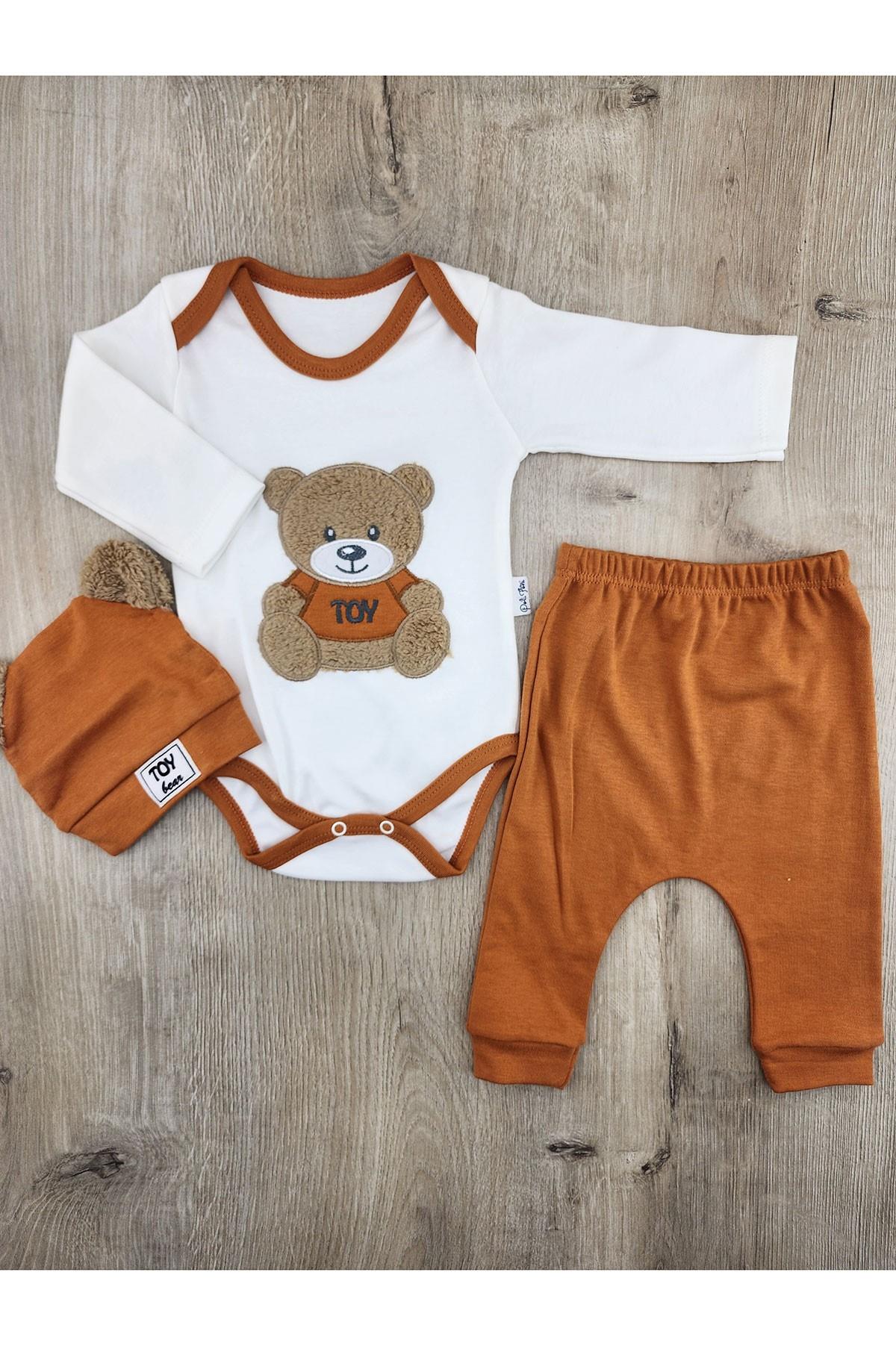 Polifoni (3-9 Ay) 1735 Toy Ayıcık Desenli Şapkalı Çıtçıtlı Badili Takım