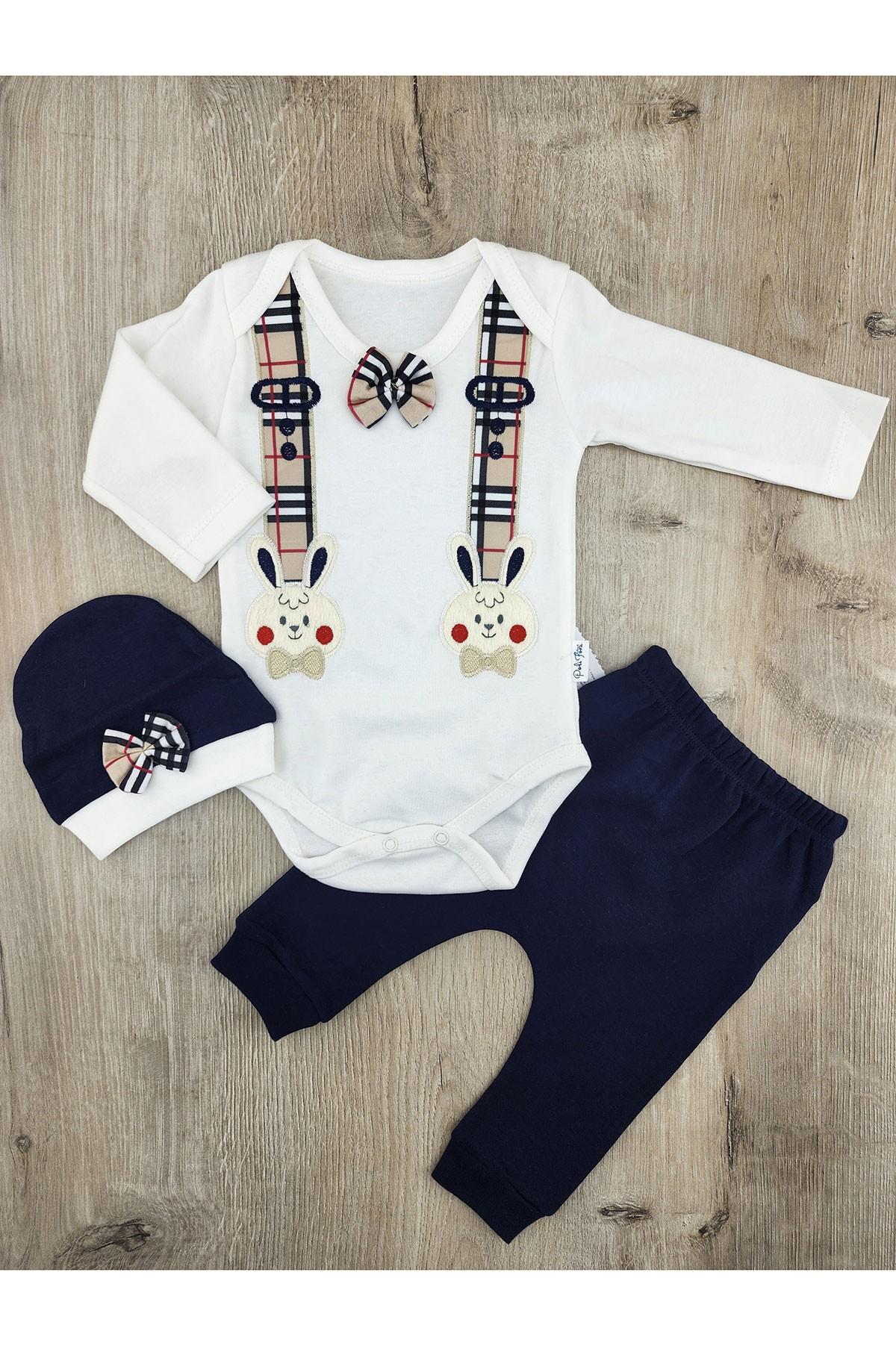 Polifoni (3-9 Ay) 1740 Askılı Tavşan Desenli Şapkalı Çıtçıtlı Badili Takım