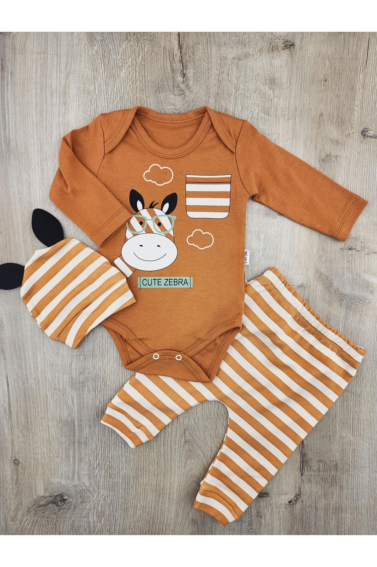 Polifoni (3-9 Ay) 1785 Çizgili Zebra Desenli Çıtçıtlı Badili Şapkalı Takım