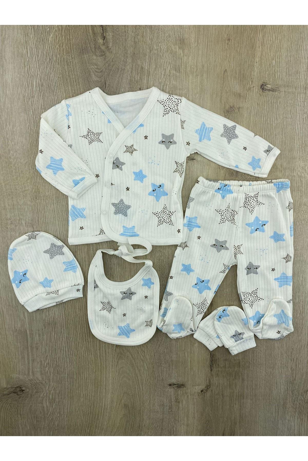 PZB-04 Mavi Yıldız Desenli 5Li Zıbın Takımı