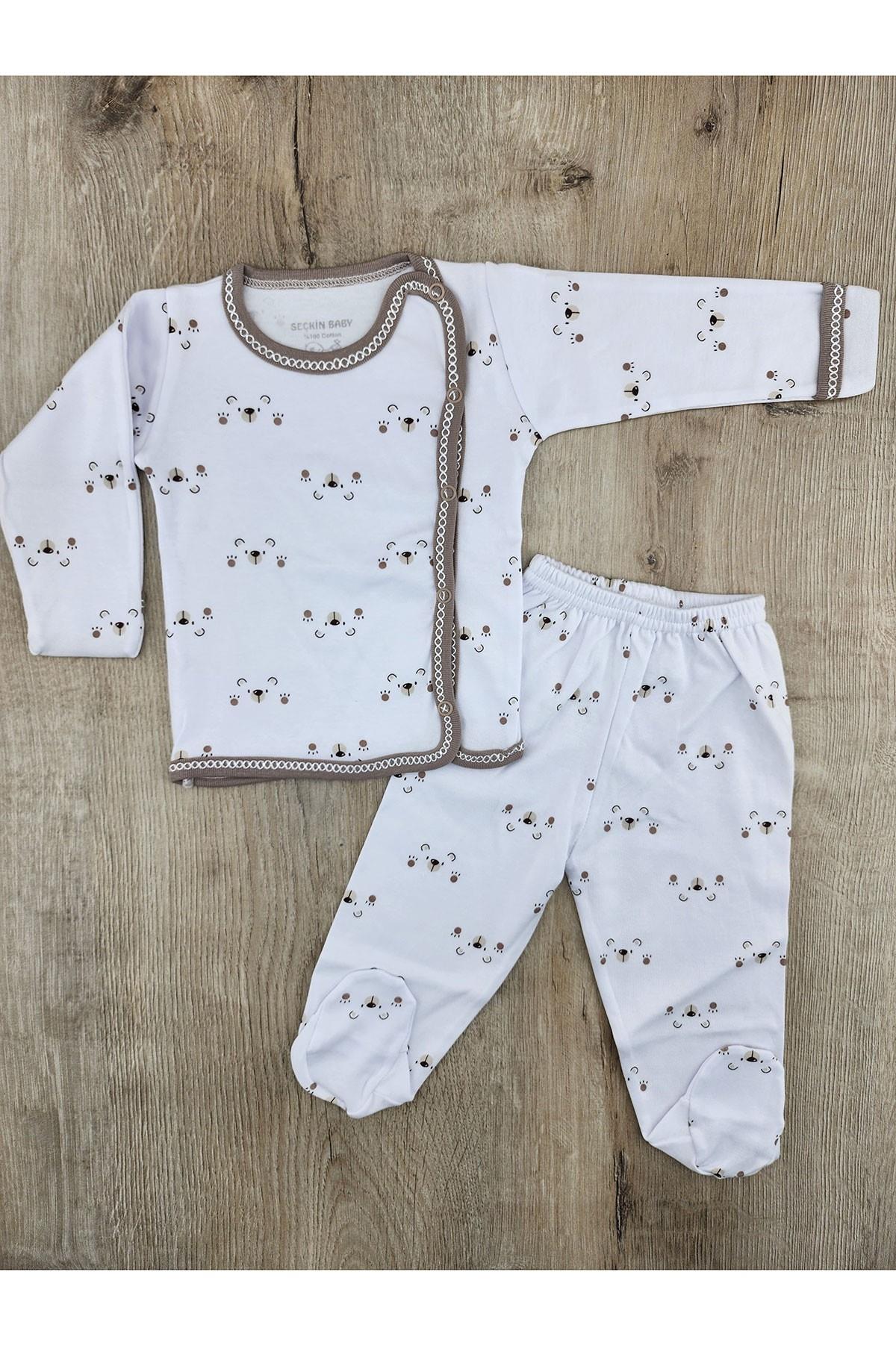 Seçkin (0-6 Ay) Ayıcık Desenli Kendinden Eldivenli Zıbın Takımı