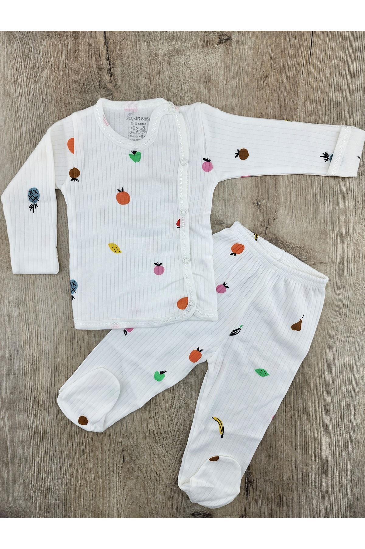 Seçkin (0-6 Ay) Meyve Desenli Kendinden Eldivenli Zıbın Takımı