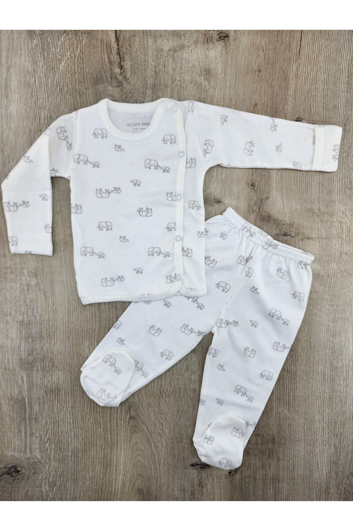 Seçkin (0-6 Ay) Minik Fil Desenli Kendinden Eldivenli Zıbın Takımı