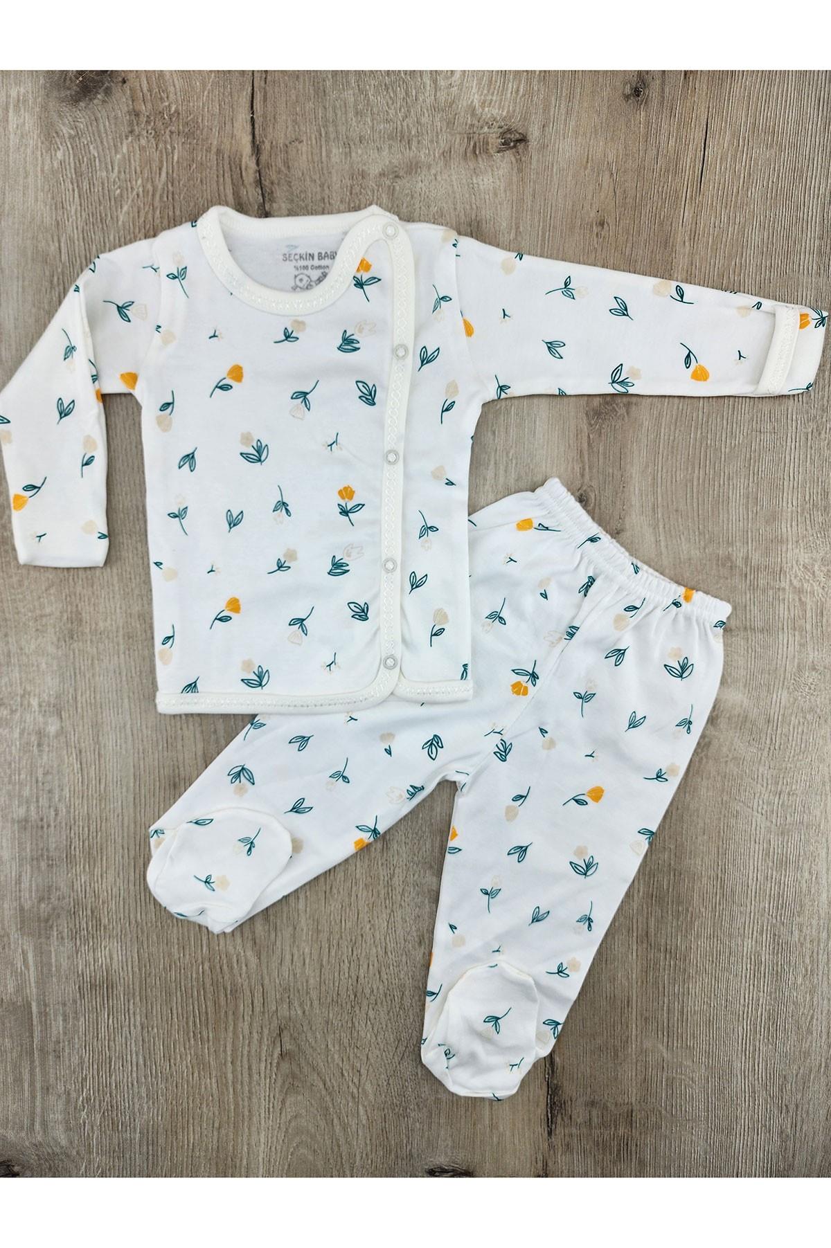 Seçkin (0-6 Ay) Yaprak Desenli Kendinden Eldivenli Zıbın Takımı