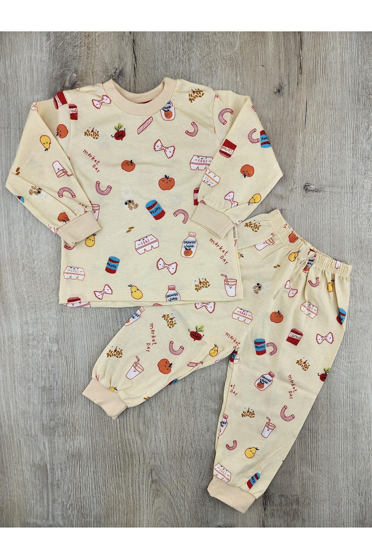 Süpermini (1-8 Yaş) Süt-Portakal Desenli Pijama Takımı (P-00000007056)