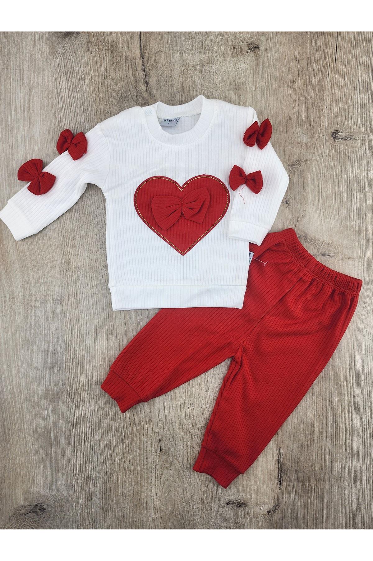 Tomofil 961 (6-9-12 Ay) Kalpli Fiyonk Desenli Kolları Fiyonklu Mevsimlik Takım
