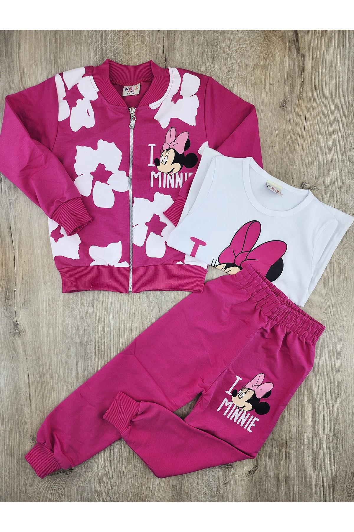 Wolf (3-10 Yaş) Minnie Desenli Hırkalı Badili 3Lü Mevsimlik Takım